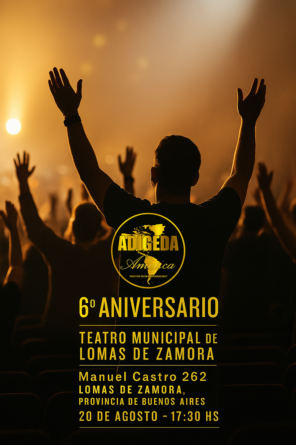 La Alianza De Iglesias Cristianas Evangélicas De Argentina (ADICEDA), bajo el lema “Uniendo Iglesias en América”, celebrará su 6º aniversario con un gran evento este miércoles 20 de agosto a las 17:30 hs en el Teatro Municipal de Lomas de Zamora, ubicado en Manuel Castro 262, en el corazón de esta ciudad bonaerense.