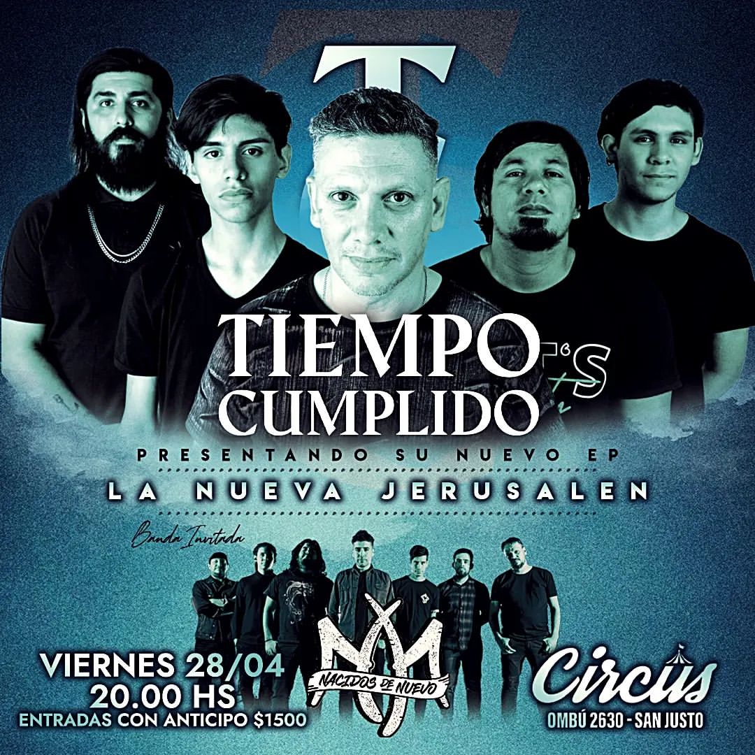Estara presentando su Nuevo Album EP- «LA NUEVA JERUSALEM»!! acompañados de nuestros amigos de «nacidos de nuevo rock» El viernes 28 de abril/20hs……Sera una noche llena de musica con un mensaje diferente y contundente!! se presentan 2 bandas con muchas trayectoria en el ambiente cristiano, donde tambien compartieron escenario con muchos artistas cristianos!! se espera una audiencia con un auditoria lleno!! la cita es en circus bar (ombu 2630 san justo) Entradas anticipadas 1500$ y en puerta 2000$ para entradas por privadote podes comunicar al +5491138815141//////// entradas fisicas disponibles en peniel san justo (almafuerte 3368) no te lo pierdas!!!!